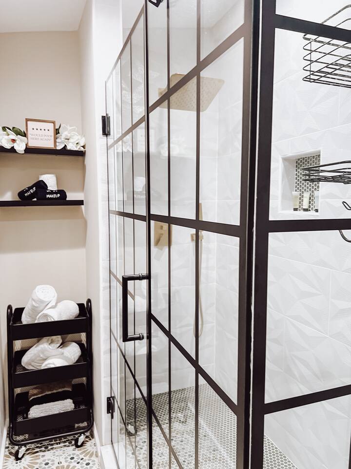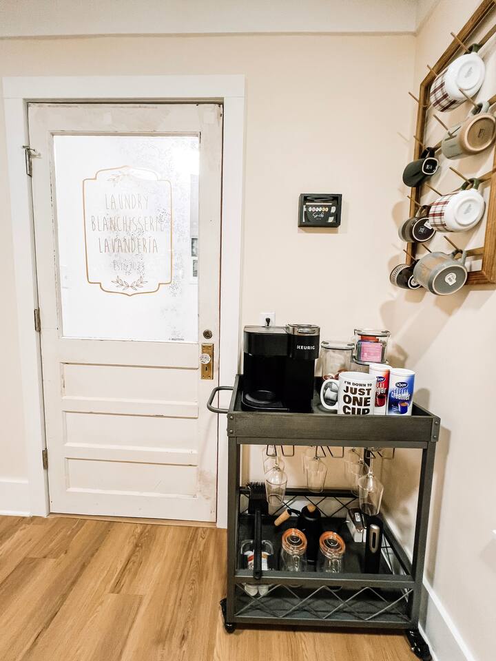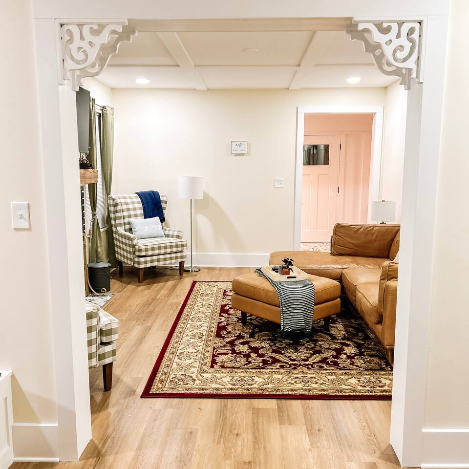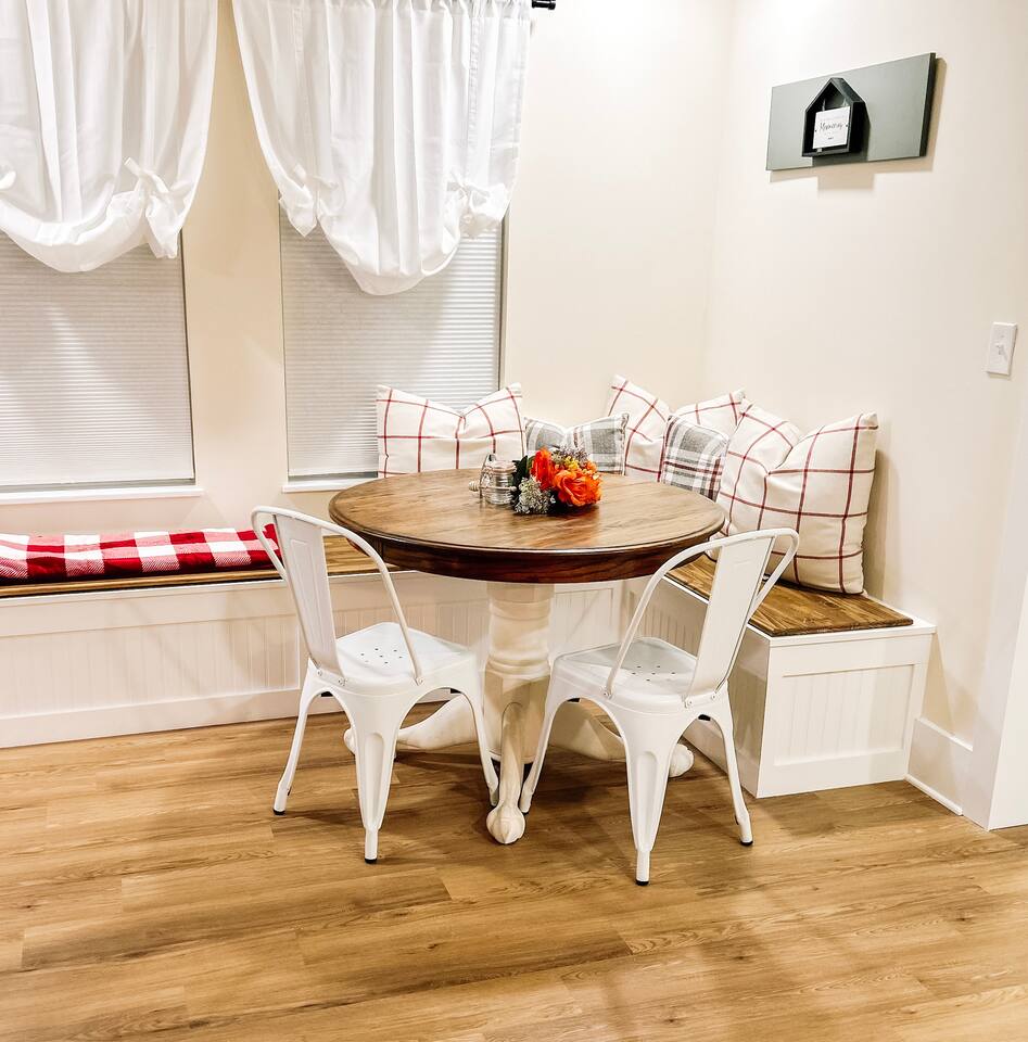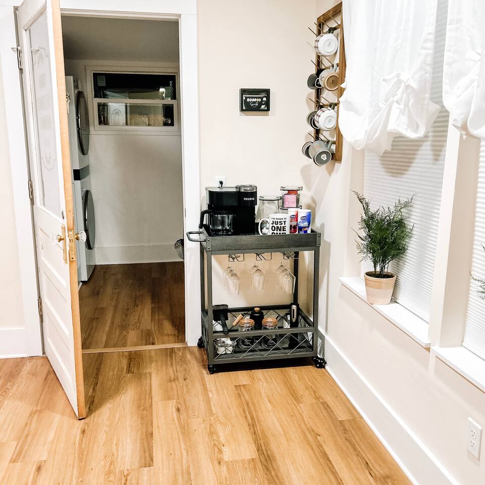 This newly renovated home offers (3) bedrooms and (2) full bathrooms. The master bedroom has an ensuite bathroom complete with dual vanities and towel warmer. The bunk room has a full size bed on the bottom, large enough for (2) people and a twin bed up top. The final bedroom features a twin day bed with trundle bed underneath. Enjoy the mudroom when you enter the home which is equipped with a reading nook, pet area, and IG worthy selfie station. Relax in the living room in front of the electric log fireplace and snuggle up for your favorite movie. You will enjoy all the creature comforts of home including full size washer dryer, fully equipped kitchen, coffee nook stocked with assortments of tea, cider, and coffee, back yard firepit, and charcoal grill. Even your fur babies will feel right at home with soft dog beds, bowls, treats, and crates provided.