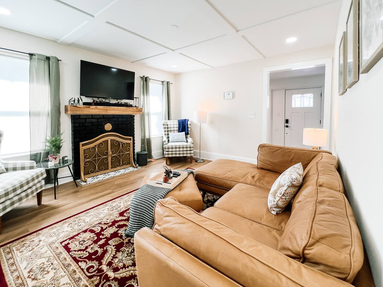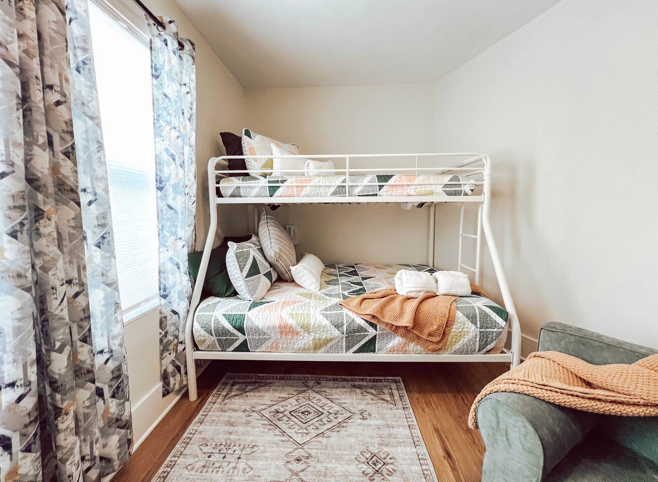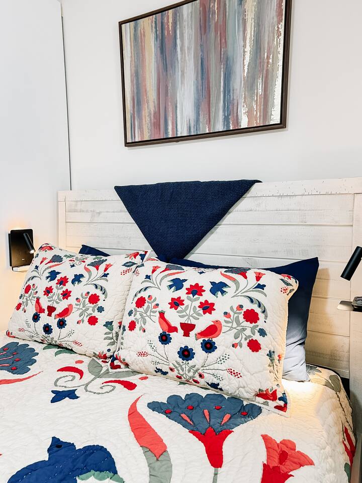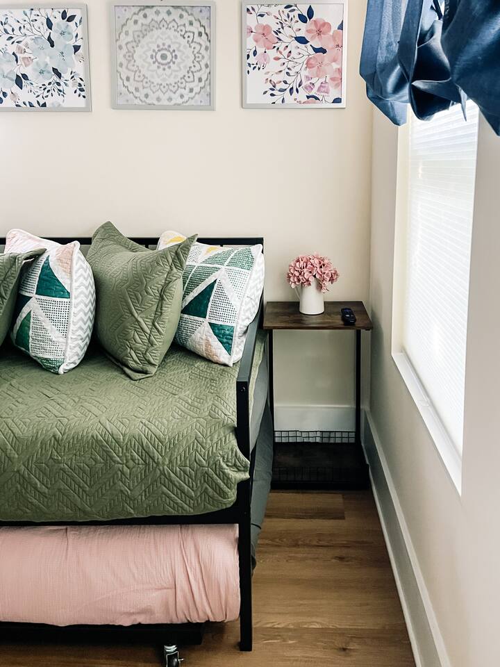 This newly renovated home offers (3) bedrooms and (2) full bathrooms. The master bedroom has an ensuite bathroom complete with dual vanities and towel warmer. The bunk room has a full size bed on the bottom, large enough for (2) people and a twin bed up top. The final bedroom features a twin day bed with trundle bed underneath. Enjoy the mudroom when you enter the home which is equipped with a reading nook, pet area, and IG worthy selfie station. Relax in the living room in front of the electric log fireplace and snuggle up for your favorite movie. You will enjoy all the creature comforts of home including full size washer dryer, fully equipped kitchen, coffee nook stocked with assortments of tea, cider, and coffee, back yard firepit, and charcoal grill. Even your fur babies will feel right at home with soft dog beds, bowls, treats, and crates provided.